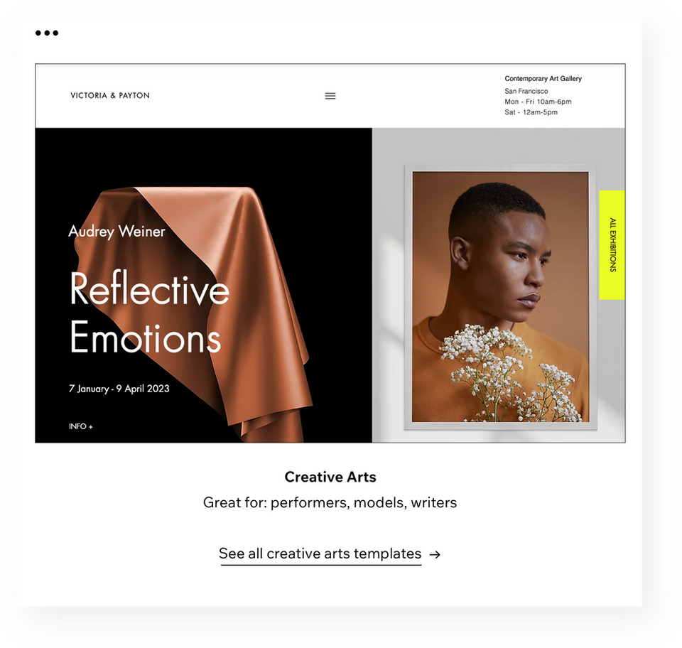 You can select from any of our industry-leading website templates, featuring fitness, beauty, education, photography, consulting, and more.
