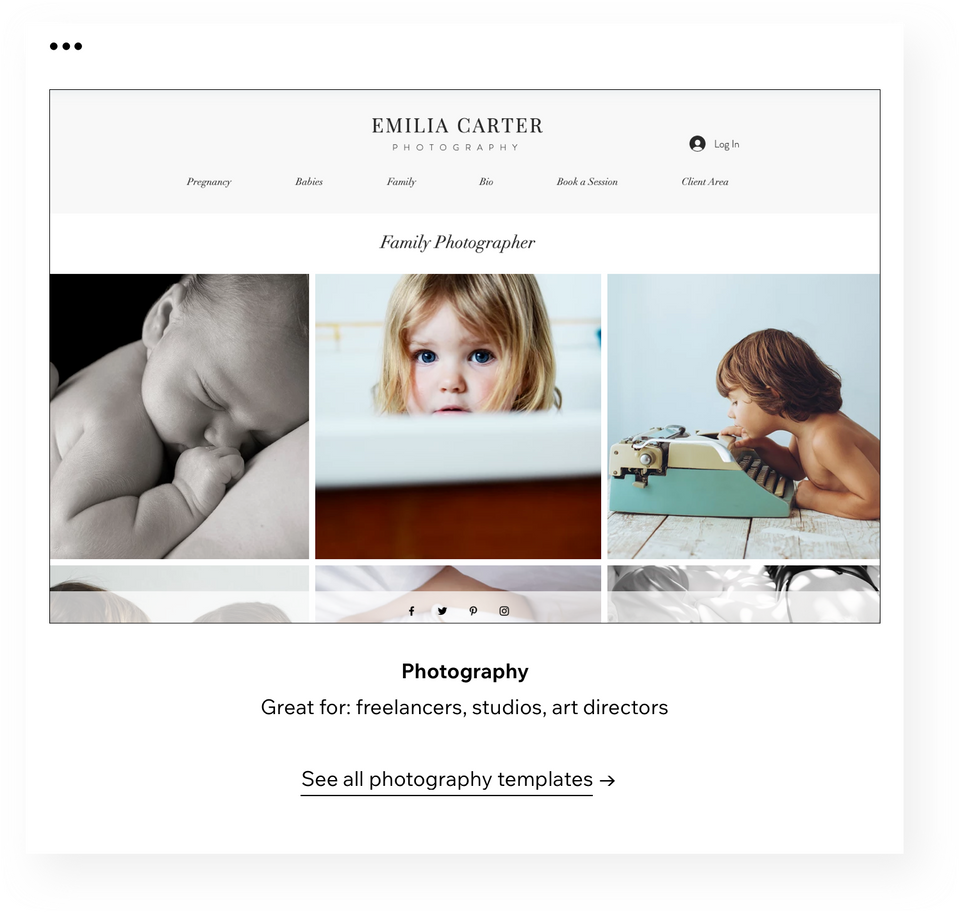 You can select from any of our industry-leading website templates, featuring fitness, beauty, education, photography, consulting, and more.